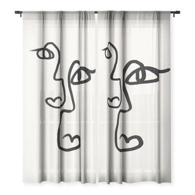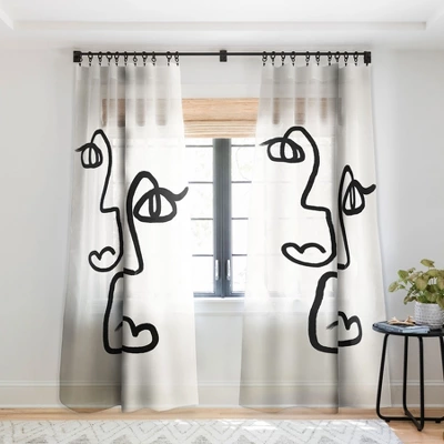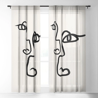 Bohomadic Studio Double Line Faces Black Single Panel Sheer Window Curtain – Society6